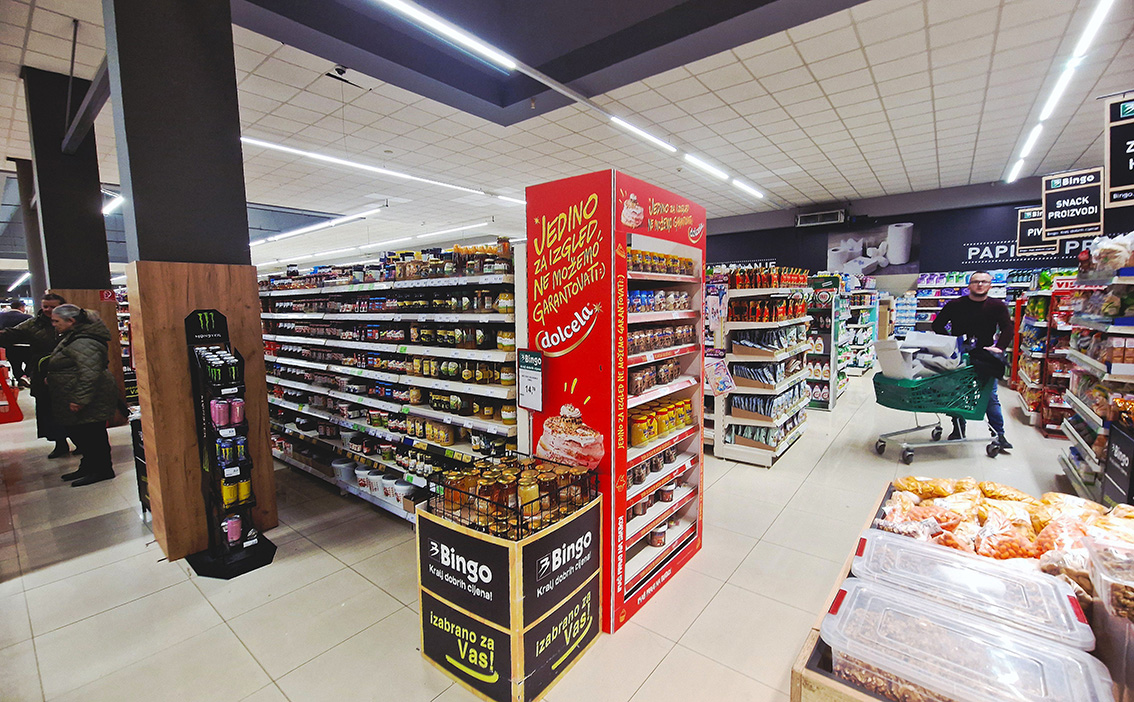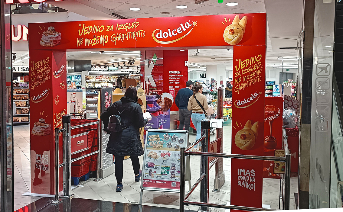 Kampanja, Podravka Dolcela Formati oglašavanja, GOL, shelf frame i full brending bocne police. Kampanja realizovana u trgovačkim lancima KONZUM, NAMEX, BINGO i MERCATOR. @podravka Mandis