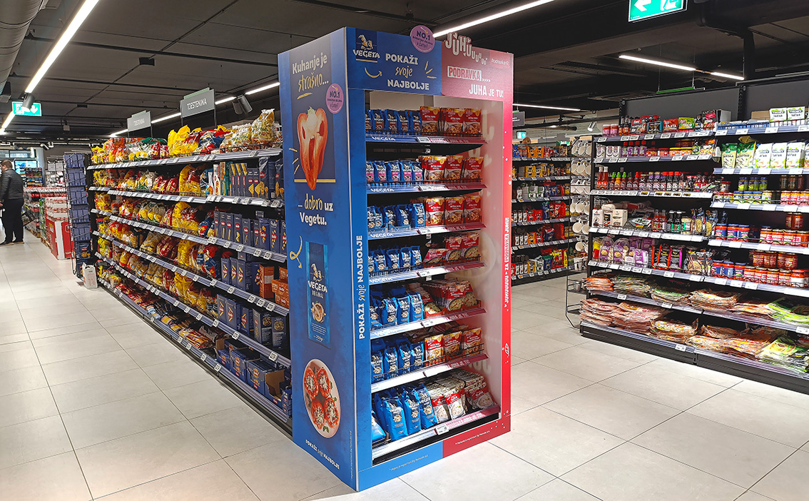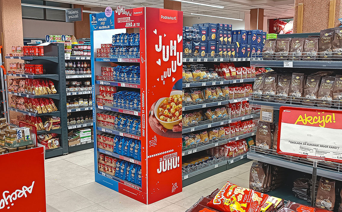 Kampanja, Podravka Vegeta, Vegeta+Juhe Formati oglašavanja, gol, shelf frame i full brending bocne police. Kampanja realizovana u trgovačkim lancima MERCATOR i BINGO. @podravka Mandis