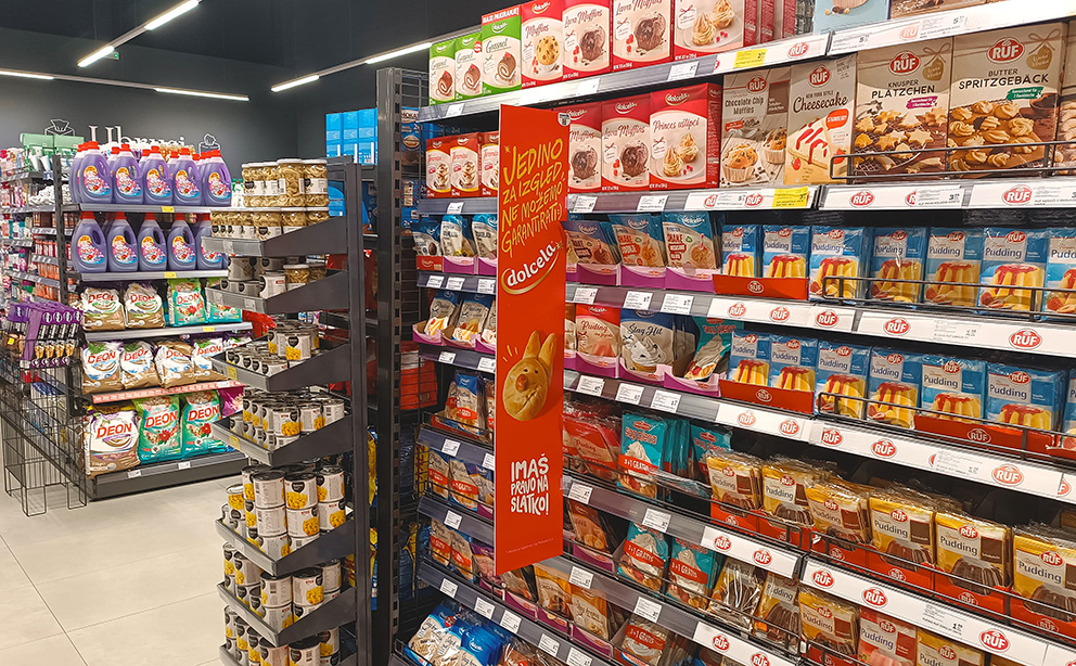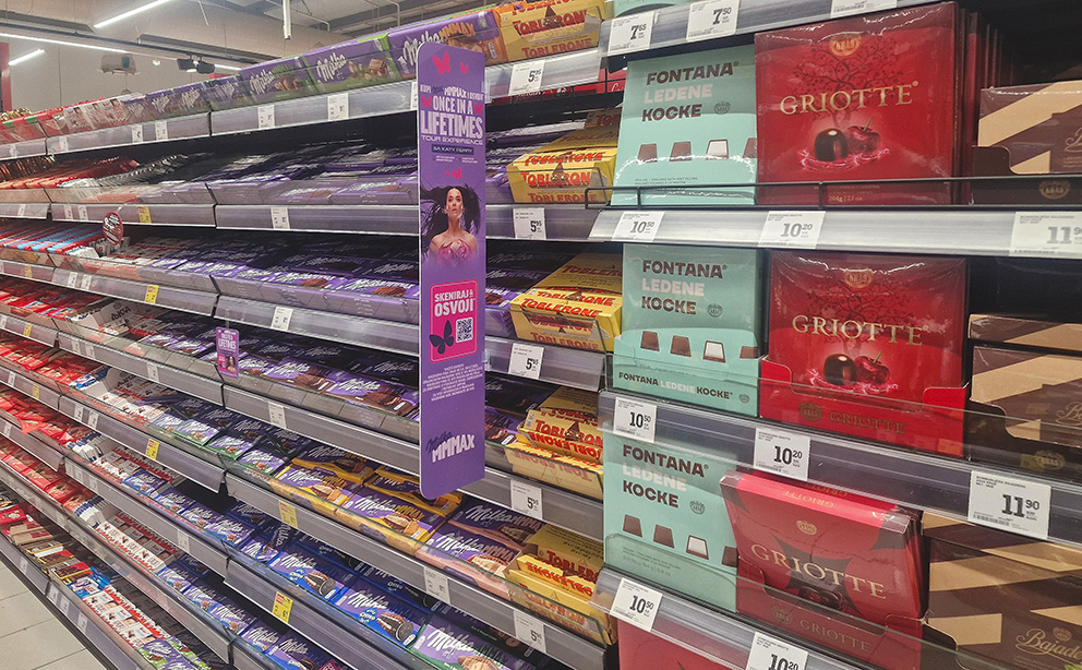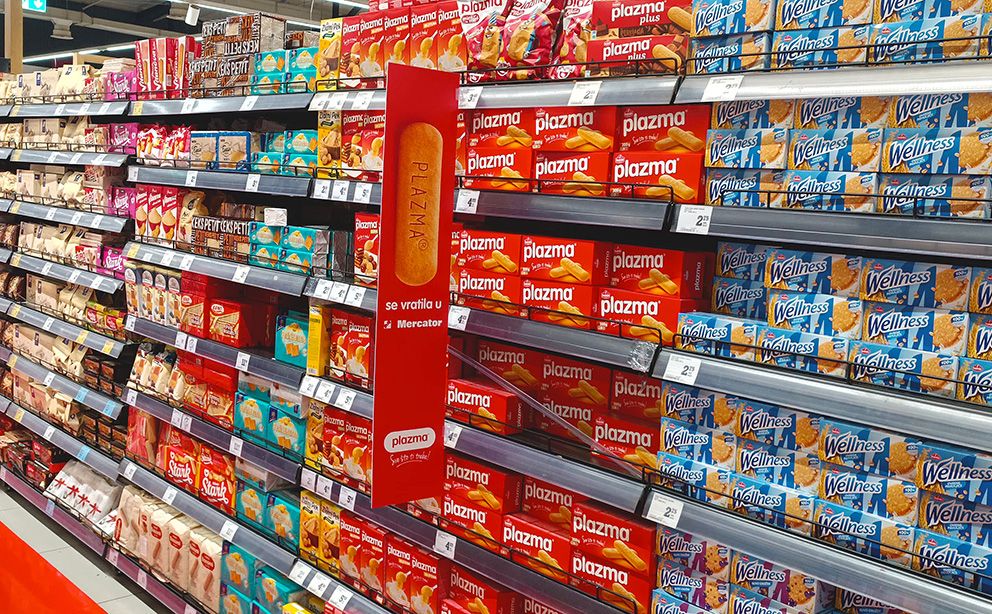 Privucite pažnju kupaca na početku reda polica s Mandis Shelf dividerom. Shelf divider je jedan od najpopularnijih oglašivačkih formata s iznimno visokim stepenom uticaja na odluku o kupovini. Savršen za promociju novih proizvoda i isticanje akcijskih prodaja iz svih kategorija. Istraživanja pokazuju da se potrošači osjećaju bliže proizvodu koji se reklamira ovim formatom.